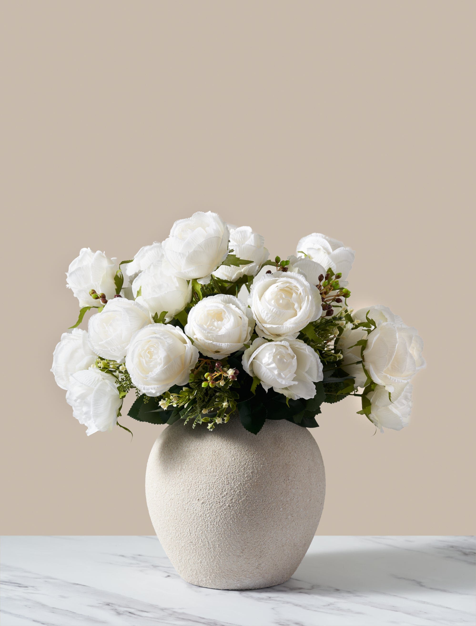 Faux Large Rose Arrangement - White Ivory (3 Stems/21 Roses)